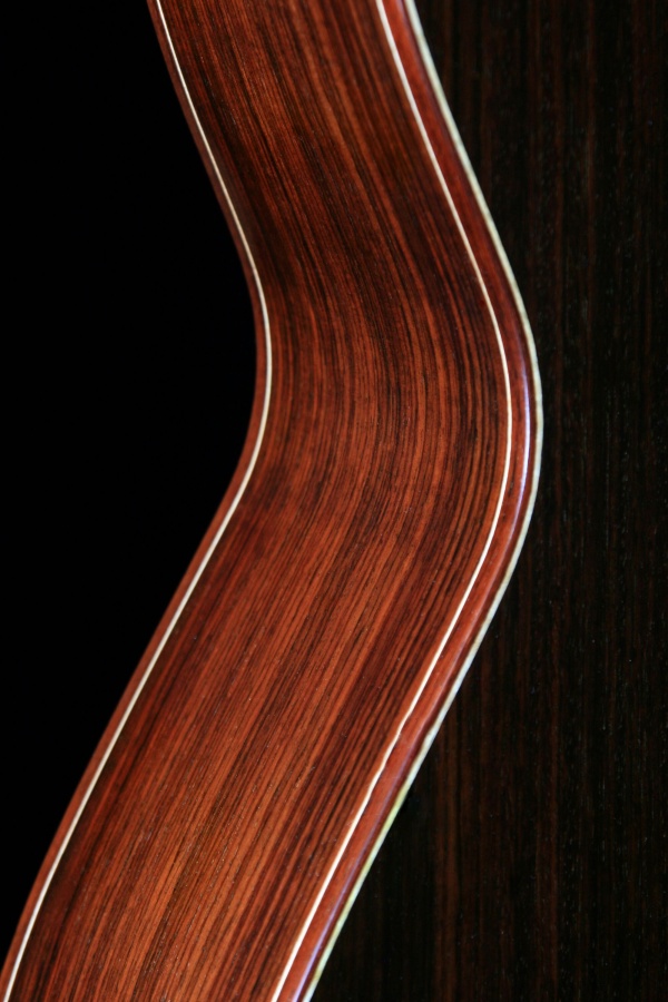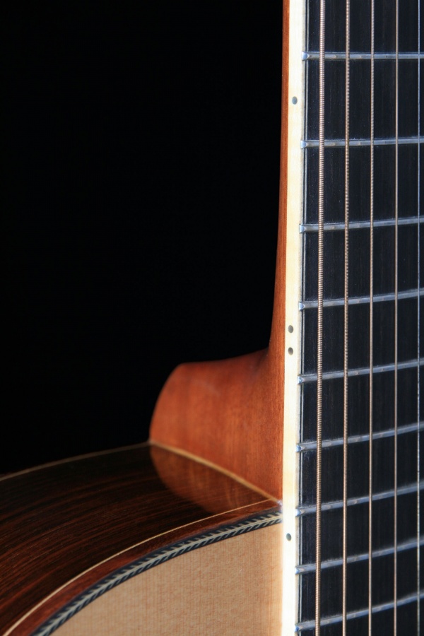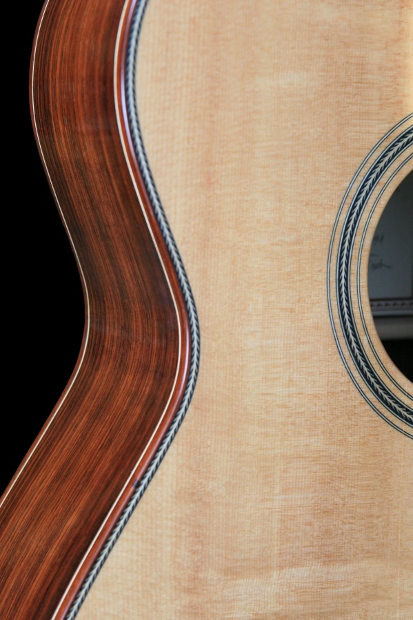 Provedení - celomasiv. Materiál : přední deska - smrk sitka, zadní deska a luby - indický palisandr, krk - mahagon, hmatník a kobylka - eben. Povrchová úprava - nitrocelulozový lak.